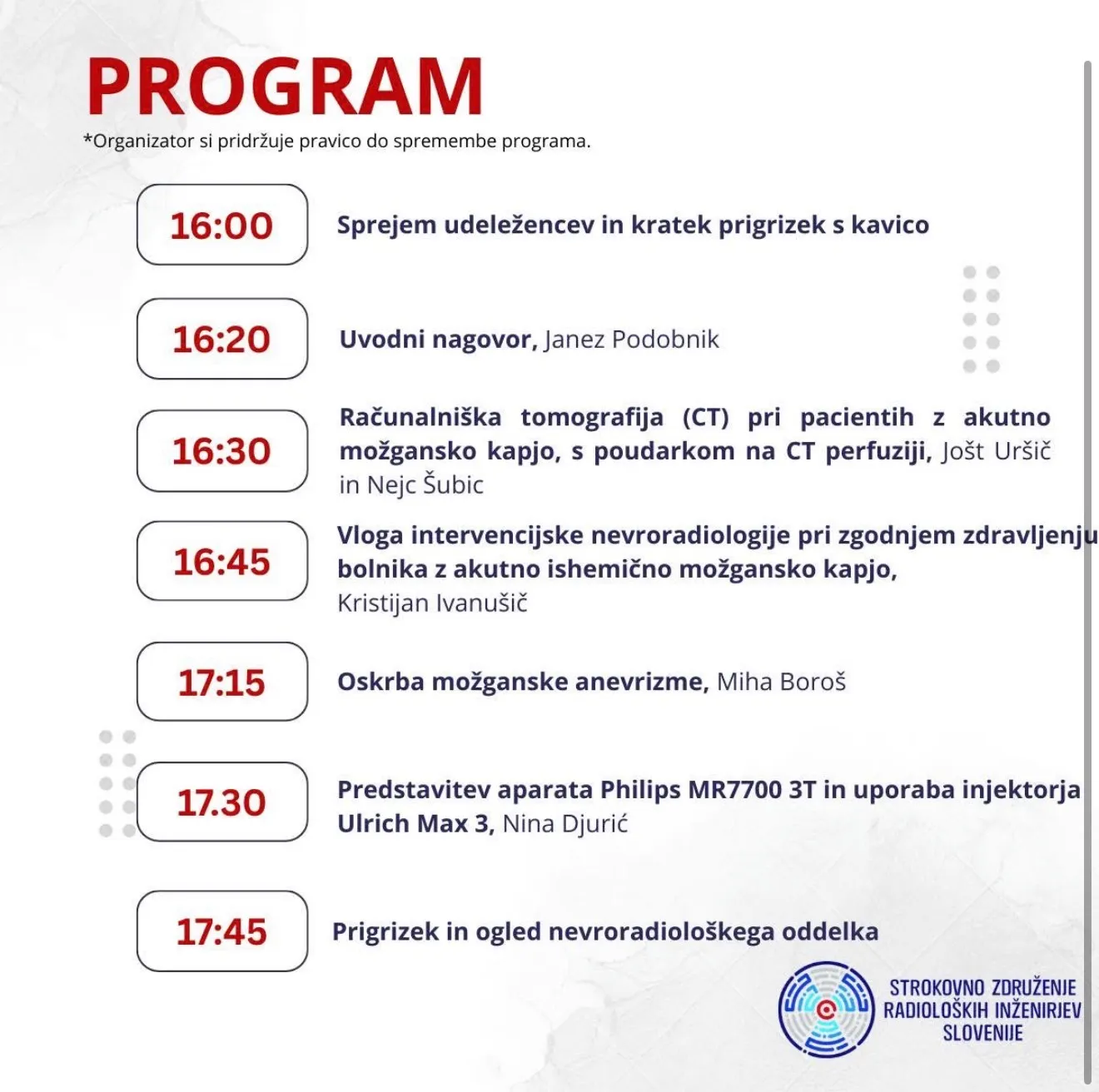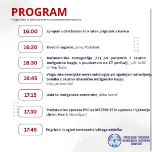 - voden ogled nevroradiološkega oddelka in strokovna predavanja s pogostitvijo.